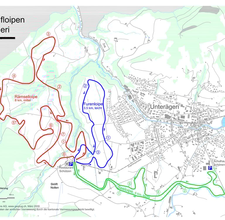 Das kleine Gebiet Unterägeri fällt unter die Rubrik "Perlen" und "Trouvaillen". Die drei Loipen umfassen total 18.5 km. Zentralster Einstiegspunkt aller drei Kreise ist das Restaurant Schützen. Unterägeri hat den Vorteil, dass man von den grossen Ballungszentren in weniger als einer halben Stunde langlaufbereit ist.